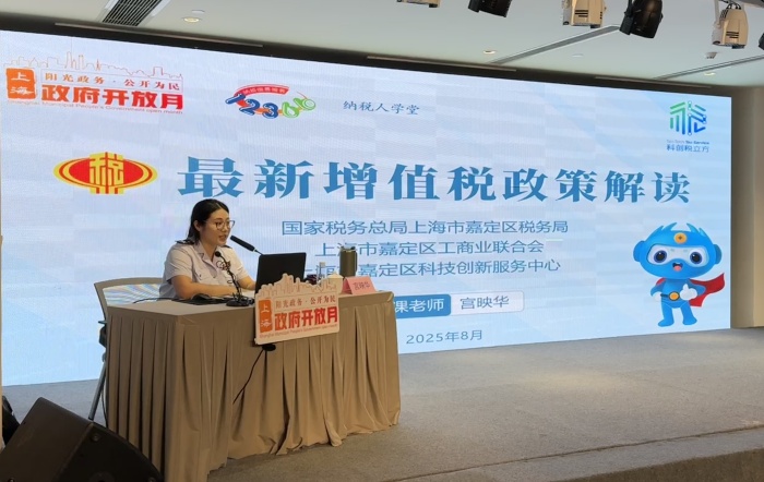 为深入推进“政府开放月”活动,切实提升税收政策知晓度和执行力,近日,嘉定区税务局联合区工商联、科创服务中心共同组织了一场增值税最新政策专题培训。本次培训特邀上海财经大学博士、上海国家会计学院老师宫映华现场授课,同时通过科创中心线上平台同步直播,为企业搭建便捷高效的学习平台,有效打通税收政策落地的“最后一公里”。
