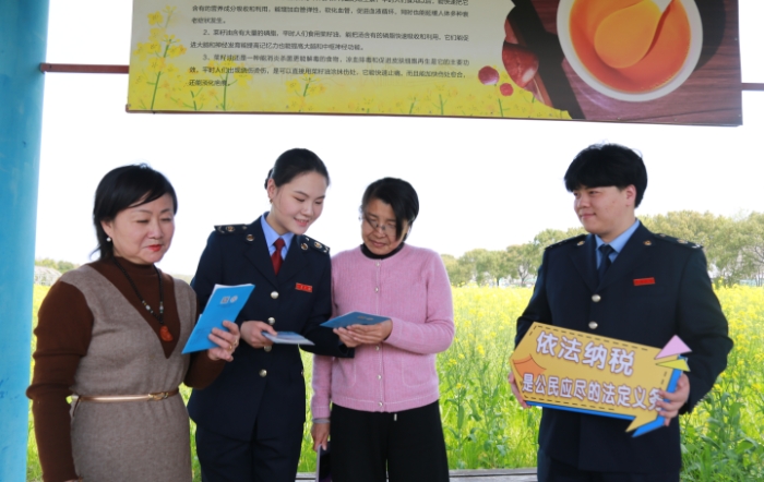活动现场,税务干部在菜花节主景区设立“移动税宣驿站”,穿梭于金色花田间,面向往来游客、周边商户及农业经营主体开展流动式政策宣讲。工作人员向往来群众发放新版增值税法、个人所得税汇算清缴、涉农税收政策等宣传手册,重点讲解依法诚信纳税的重要意义、新增值税法的核心变化、个税汇算申报注意事项,并围绕小规模纳税人规范开票、农产品自产自销免税政策适用条件等热点问题,用通俗易懂的语言进行现场答疑,提供“一对一”精准咨询服务,引导纳税人增强税法遵从意识,共同维护税收法治公平。