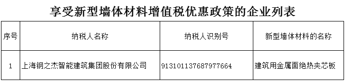 根据《关于新型墙体材料增值税政策的通知》(财税〔2015〕73号)的规定,现将本市2025年享受上述增值税即征即退政策的纳税人的相关信息公示。如有不同意见,可向国家税务总局上海市税务局(货物和劳务税处)反映。