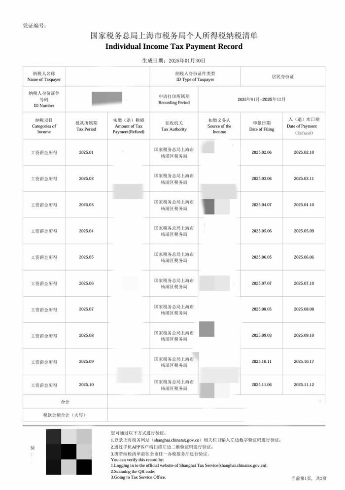 1.Using the App. Open your Individual Income Tax App and tap the [Scan] icon. Scan the QR code in the bottom-left corner of your record. If it shows "Verification Successful", the record is authentic.