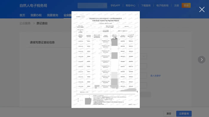 输入纳税人识别号、姓名、纳税记录左下方的查询验证码后,点击【立即查询】,若生成纳税记录即为查验成功。