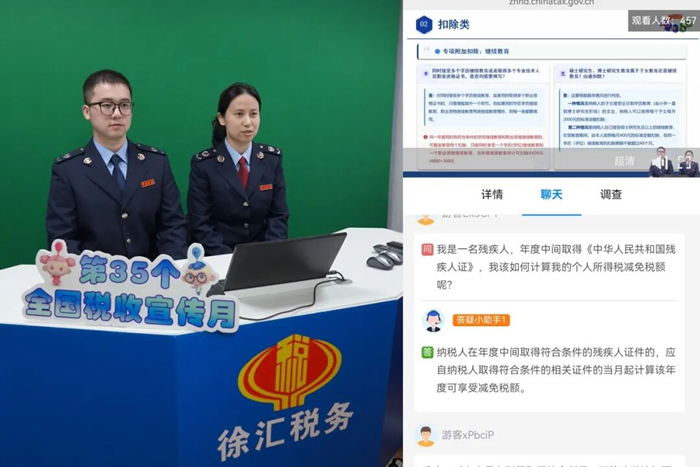 徐汇区税务局依托线上直播平台开展税收宣传月专题培训。税务骨干围绕个税年度汇算热点内容,结合实操案例细致解读、实时互动答疑,帮助纳税人缴费人明晰政策要点与办理流程,切实提升依法纳税意识。